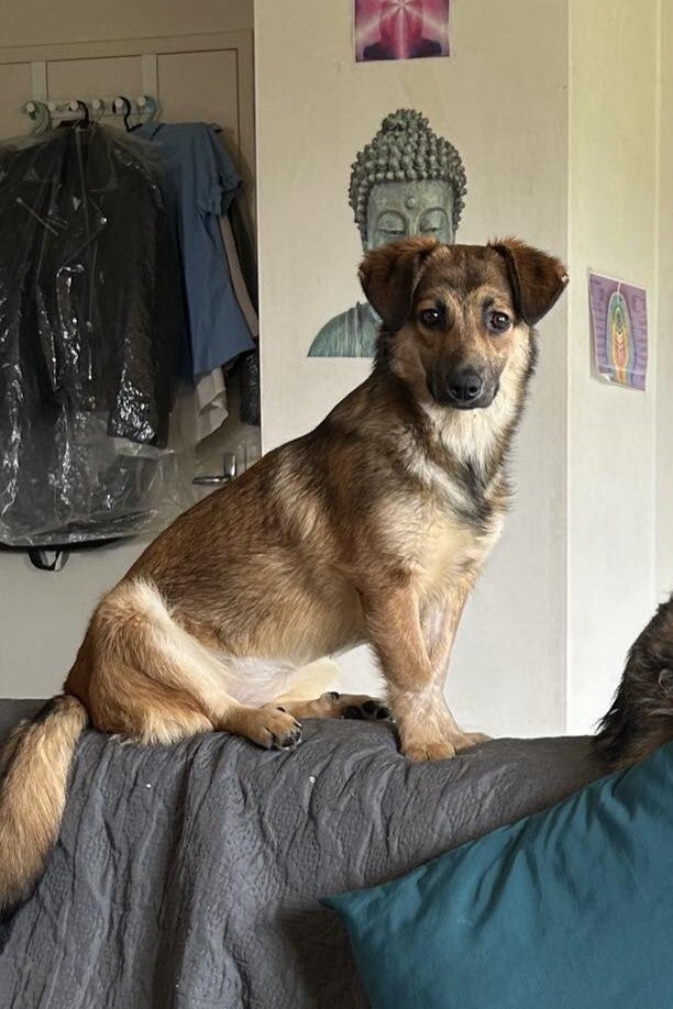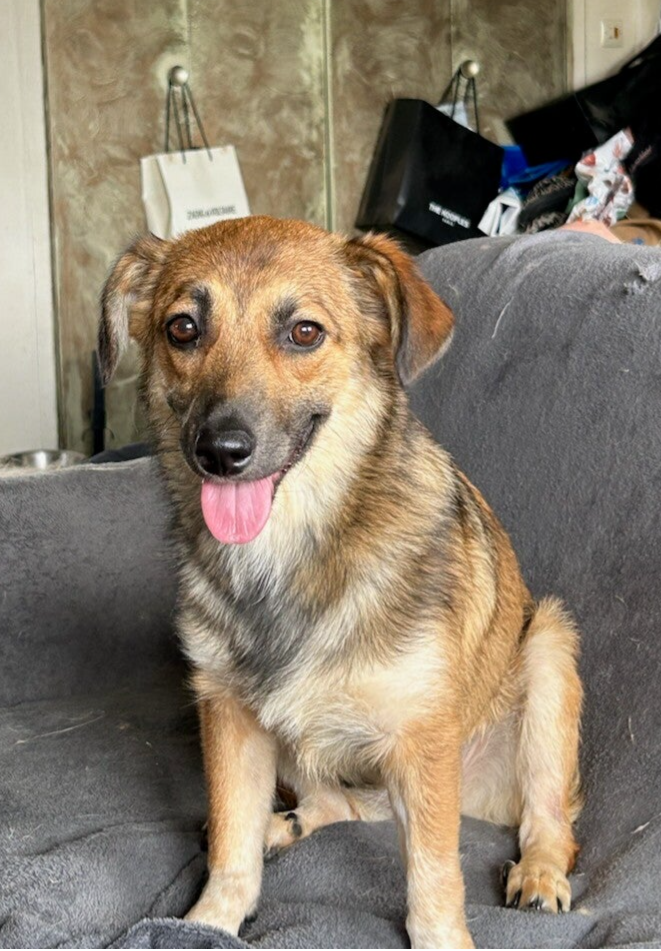 Je m'appelle Tulipe, et j'ai été adoptée en juillet 2024 par Sandrine et Frédéric après quelques mois en famille d'accueil chez Valérie. 🐾❤️