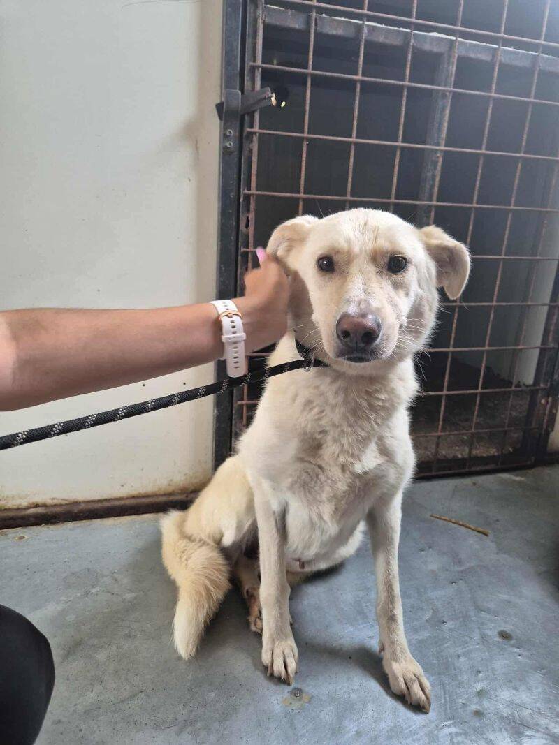 Je suis arrivée en fourrière en juin 2025. On ne connaît pas mon passé. Depuis j'attends, dans un box étroit ou je déprime, je ne comprends pas pourquoi je me retrouve ici et j'ai peur. Je suis de nature réservée, et pourtant j'ai beaucoup apprécié les caresses des bénévoles. J'ai tant d'amour à donner, pour peu qu'on me sorte de cet endroit. Avec de la patience, je pourrais reprendre confiance et être une super chienne de famille.
