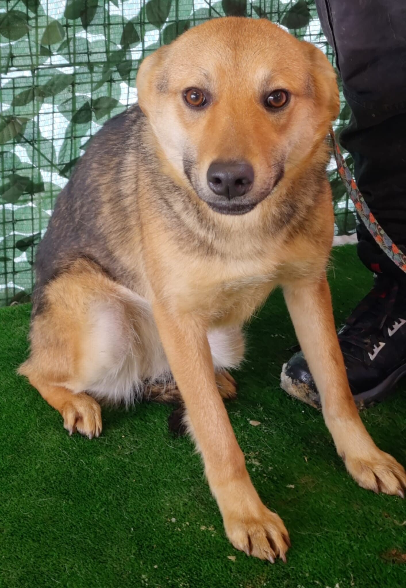 Je suis encore jeune et j’ai beaucoup à apprendre. La laisse me fait un peu peur pour l’instant, alors il faudra m’accompagner avec patience et douceur pour m’aider à comprendre que le monde peut aussi être un endroit rassurant.